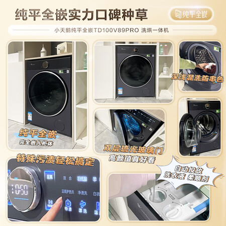 洗衣机小天鹅TD100V89PRO洗衣机颜值很高,样子很漂亮,还是很喜欢的。外形外观:外形不错,洗净比很高好有招牌的的除菌技术,买这个就是看中他的洗烘大容量,希望好用。洗衣机体积不大,容量还可以!感觉还不错,洗了几天衣服过来评价!洗衣服很干净噢,比之前的洗衣机要洗的干净,二级节能的,点赞洗衣机!家里卫生间面积小,特意选的超薄洗衣机,还带烘干功能,很满意。家里空调、冰箱、热水器、洗衣机都是的。外形外观:干净漂亮洗净效果:洗涤效果很棒除菌效果:有带尝试容量大小:够用以旧换新:补贴很给力非常划算外形外观:寸大小和我需要到刚刚好,感觉特别棒洗净效果:天收到就洗了一下衣服,超级超级干净 容量大小:自己一个人使用大小恰到好处 ,
