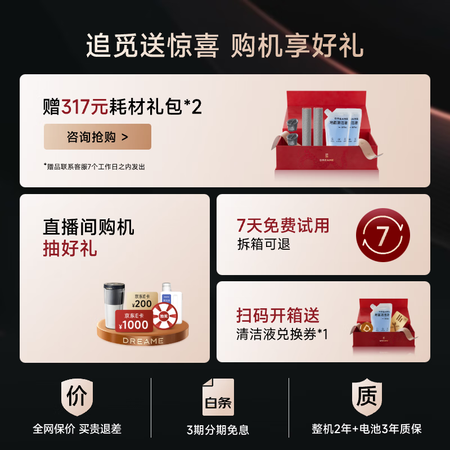 洗地机追觅H20 Ultra 旋锋版同款复购第二台,我是多执着,就看好它!五合一可以满足家里大部分的清洁工作,我家两狗一猫,我很负责的说,清理的很干净。这个价位的洗地机,应该是比较出众一款,看来这次选择没有错,如果你选择*块钱的洗衣机,建议你选择这一款,错不了很喜欢这款产品,清洁干净,使用方便,以后家庭打扫的任务可以交给孩子来完成了拖地拖的很干净,容易上手,吸力很强,拖完会自动烘干,非常不错,快递也很给力看看起来非常不错,高级,暂时没有使用,包装也十分的严密,精美,是官方推荐的清洁剂,期待使用效果,好用的话还会复购再买。
