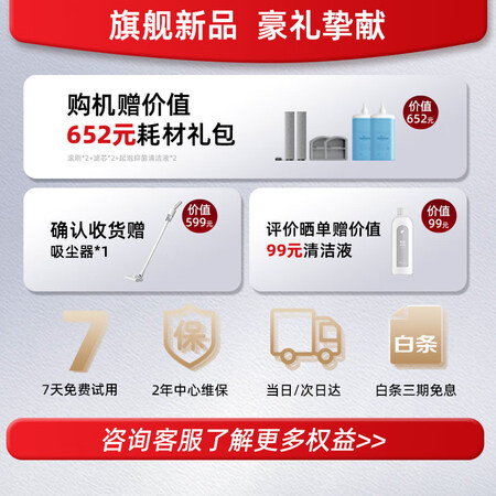 特色功能:基站款,语音提示,一键自清洁,除菌,垃圾干湿分离,毛发防缠绕,脏污智能感应,180°平躺