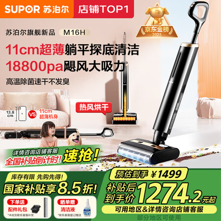 苏泊尔(SUPOR)【国家补贴】洗地机家用拖地机洗拖一体机自动清洗地机180度躺平智能洗地机热烘干除菌洗地机M16H目前活动价:1269.05元!