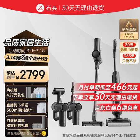 洗地机石头A30 Pro Combo可以度躺平,而且吸力真的不错啊,让清洁变成轻松的事情,感觉真的可以入收,而且还有吸尘功能,还送了一个吸尘器,太划算了!全能大师,配件很多!续航和吸力应该都不错!可以躺平不缠毛的设计非常棒,期待他的清洁效果!看看能不能让清洁效率翻倍吧!动力十足吸尘拖地效果都比较干净,而且还是多功能,经济实惠,性价比也很高。拿给妈妈使用的,妈妈说用的很轻松,拖地很干净。毫不犹豫又买了一自己留着用。洗地机已经收到了 很好用 也很省心 趁国补买的很划算哦 有了它,打扫卫生拖地再也不是事啦 还是很好的 喜欢的姐妹冲
