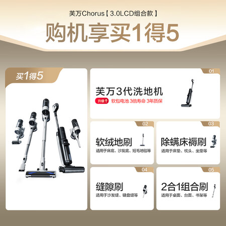 添可芙万Chorus【3.0LCD组合款】超高性价比一台洗地机,的电池足够清扫平家的地面,度的躺平太实用啦!专门测试了一下防缠,完全不缠绕,下来就看耐用性了。一直喜欢的产品 厚实耐用 四轮的挺方便 床底 边边角角都能拖到 推着很轻松 随时随地可以轻松吸拖一体 省下很多时间洗地机收到了,很好用,洗的干净,噪音不大清洁效果:挺不错的续航能力:也很组装简单,非常好用,新房子装修清洁,不需要天天累的拖地了,老牌子了,不错!一分价钱一分货。贵是贵了点,但是真省事。就这个一次性抛弃式滤尘袋,一个袋能用三四个月,真的方便了很多。相信品质。
