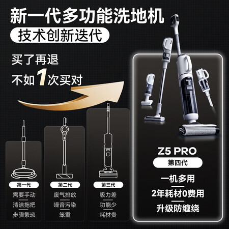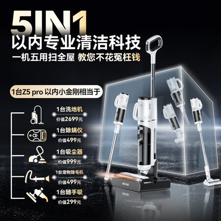以内除菌除螨洗地机扫吸拖一体拖地机家用吸尘全自动清洁扫地机多合一 Z5pro小金刚 Z5 Pro目前活动价:2499元!
