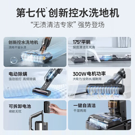 特色功能:一机多用,电池可拆卸,毛发防缠绕,垃圾干湿分离,除菌,语音提示,180°平躺