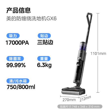 美的(Midea)家用防缠绕洗地机GX6【超薄躺平】180度平躺 洗拖一体自动清洗 吸拖洗一体 吸尘扫地无线拖地机目前活动价:2200.31元!