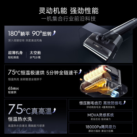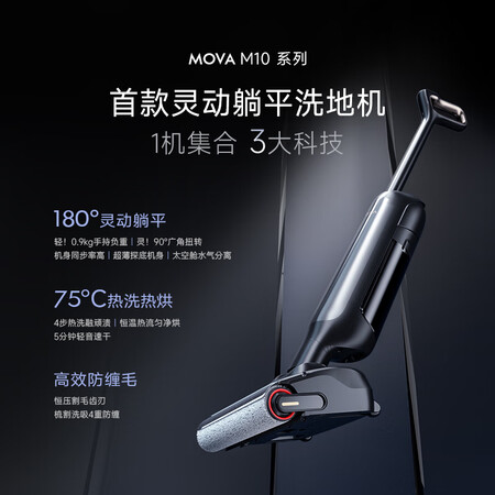Mova洗地机M10【0缠毛 0水渍 180°躺平】洗拖一体自动清洁热洗热烘除菌吸拖一体吸尘器扫拖地机器人目前活动价:1861.67元!