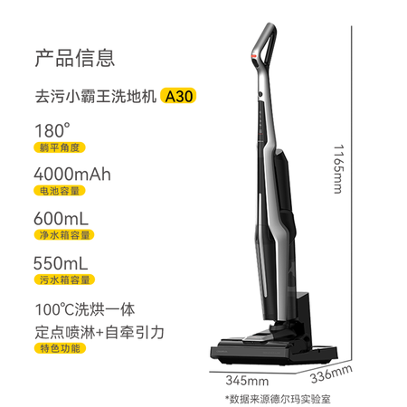 特色功能:一机多用,毛发防缠绕,语音提示,一键自清洁,脏污智能感应,垃圾干湿分离,高温,180°平躺
