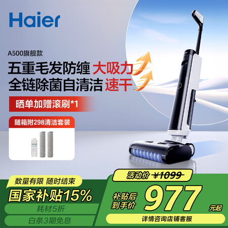 海尔A500小海豚系列【5重防缠 除菌速干】洗地机吸拖一体自动清洗拖地机器人目前活动价:972.74元!