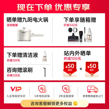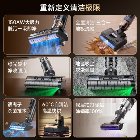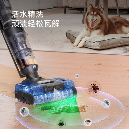 特色功能:一机多用,毛发防缠绕,垃圾干湿分离,除菌,语音提示,电池可拆卸,180°平躺