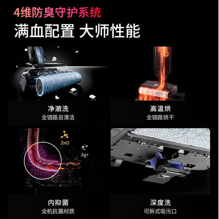 特色功能:毛发防缠绕,语音提示,除菌,一键自清洁,脏污智能感应,180°平躺