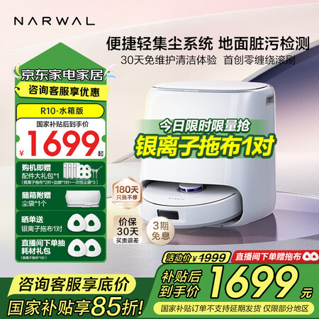 云鲸(NARWAL)【全能标杆】扫地机器人 小白鲸R10 扫拖一体自动清洗全自动拖地擦地机 轻集尘毛发0缠绕 R10-水箱版目前活动价:1692.35元!