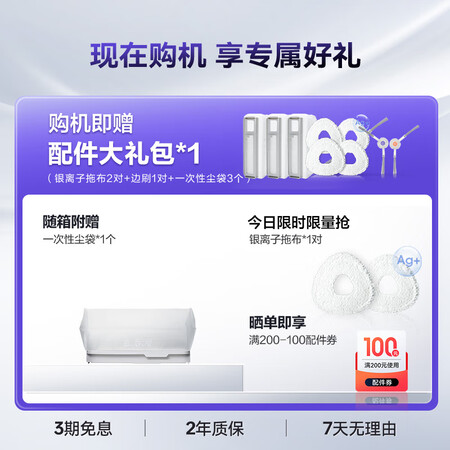扫地机云鲸小白鲸R10宝贝心仪很久了,趁活动时候买真的太划算了,有了它基本实现解放双手,声音不算大,人在家的时候它工作起来也不会特别吵,喜欢的不要犹豫啊我觉得很好用,解放双手,已经被评为了家里的劳模,只要不在家就拖上一遍,回家干干净净,到现在基本没发现什么缺点,客服也很好有问必答外观颜值:非常好看清洁效果:强力智能程度:超赞刚用,扫图建图非常快,语音响应很灵敏,加载流畅买了很多次了 价格合适 刷的也很干净 是扫地机器人的绝配 定期更换 也会吸到的更加的干净不错 下次用完了再买 很不错的购物体验