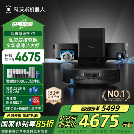 科沃斯X9扫地机器人恒压滚筒活洗洗地机器人扫拖一体自动清洗智能家用水箱版DEX61目前活动价:4655.45元!
