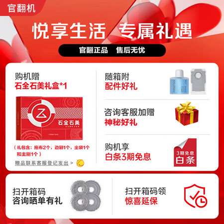 石头P10S配件很齐全,需要定期更换,买一盒正好换了两个扫地机器人,使得地面更加光亮,更加干净,值得拥有,会一直回购的,也会推荐给朋友的。师傅安装挺快的,没一会就安装好了,就是家里现在没网络,还不能用,等能用了再过来追评,风挺大的希望能好用吧,薄款哪都能放挺好的趁着活动入手划算,发货快,包装得好,非常不错,全新体验,赞赞赞!这件商品很不错,做工精细,质量很好,很实用,和家里很配,还会购买。老牌子了,很方便的扫地机,人工不需要这累了,还能减少扫到的时间,这样舒服很多!京东物流非常快?很省心,还可以送货上门哈哈哈