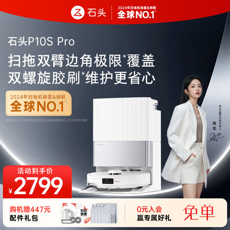 石头(roborock)扫地机器人扫拖一体 P10S Pro 扫拖洗烘一体机 自动集尘热水洗拖布烘干补水擦地拖地 A1160RR目前活动价:2369.63元!