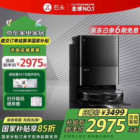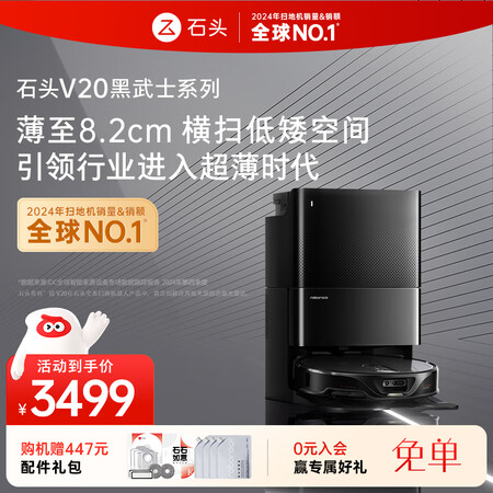 石头(roborock)超薄扫地机器人扫拖一体 V20黑武士 扫拖洗烘一体机 自动集尘热水洗拖布烘干补水擦地拖地 A2050RR目前活动价:2962.25元!