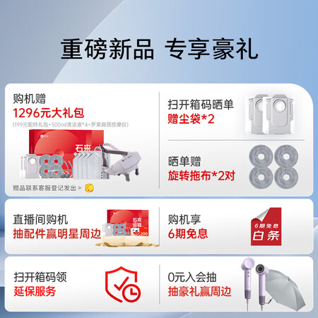 石头(roborock)扫地机器人扫拖一体 P20 Plus 自动上下水版 自动集尘热水洗拖布烘干补水擦地拖地 A1960RR目前活动价:3300.89元!