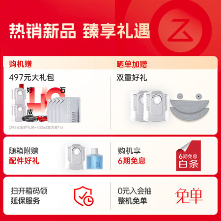 石头(roborock)扫地机器人扫拖一体 G30 扫拖洗烘一体机 自动集尘热水洗拖布烘干补水擦地拖地 A1460RR目前活动价:4655.45元!