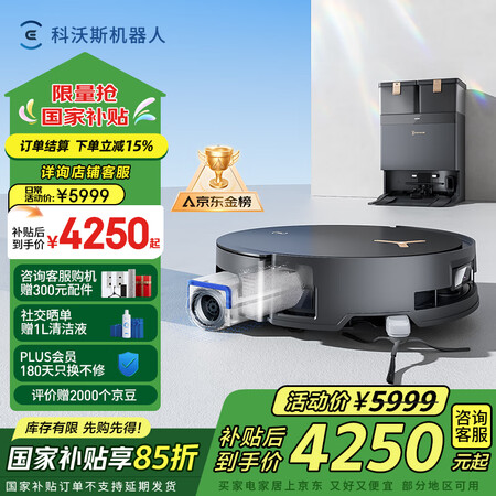 科沃斯X8PROPLUSAI扫地机器人恒压滚筒活洗洗地机器人扫拖一体自动清洗智能家用水箱版DEX56目前活动价:4232.15元!
