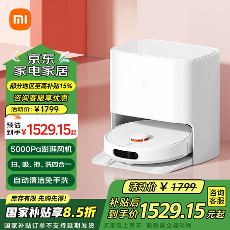 小米(MI)米家免洗扫地机器人2 家用扫洗拖一体机擦地机拖地机器人洗拖一体 全自动清洗拖布 米家免洗扫地机器人2目前活动价:1472.2元!