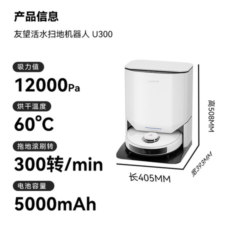 友望扫洗地机器人U300水箱版收到宝贝有一段时间了。家里正在搬家,没有使用。对品牌非常的信任,外观看起来也不错,非常有质感和格调,符合家居气质。希望用的特别好。还不错。家里的清洁工作轻松多了,吸力真的很强,能把细小的灰尘都吸得干干净净。智能化的设计也很方便,能自己规划路线,省心又省力!非常好颜值高清洁不错,续航也非常好,避障碍能力强!太喜欢了,很好很棒,彻底解放双手,比我自己打扫的都干净,强烈~,定时自动打扫很棒收到货了,包装完好无损 拿回家就使用了,特别实用方便 有了她家里干净了很多,尘土少了很多特别满意质量好 价格实惠 值得购买
