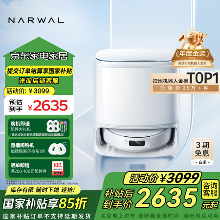 云鲸扫地机器人J5 扫拖一体自动清洗全自动拖地擦地机 机械臂仿生手外扩毛发0缠绕 水箱版【年度爆品】目前活动价:2623.61元!