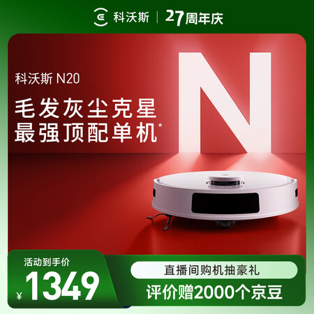 科沃斯扫地机器人N20扫拖一体扫拖一体智能家用吸尘器激光导航规划全自动洗擦扫地拖地一体机DKX56目前活动价:1142.06元!
