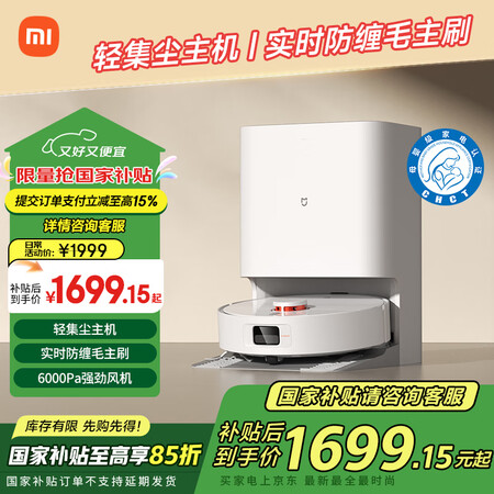 米家小米扫拖机器人H40 【国家补贴】扫地机器人 自动集尘毛发切割防缠绕 拖地洗拖一体 扫洗 扫地机目前活动价:1692.35元!
