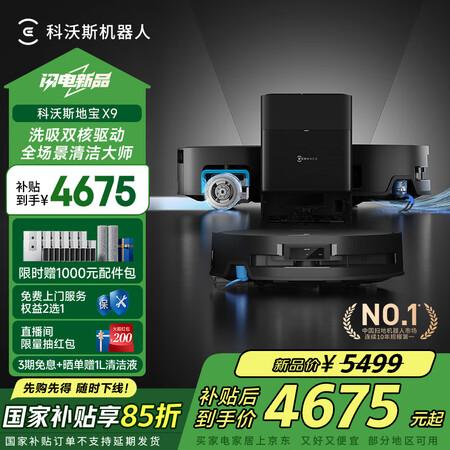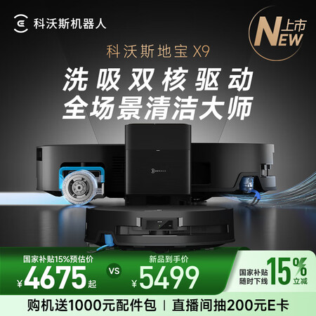 科沃斯新品X9扫地机器人扫拖一体国家补贴滚筒活洗自动清洗全自动洗地机智能家用自动上下水 X9水箱版目前活动价:4674.15元!
