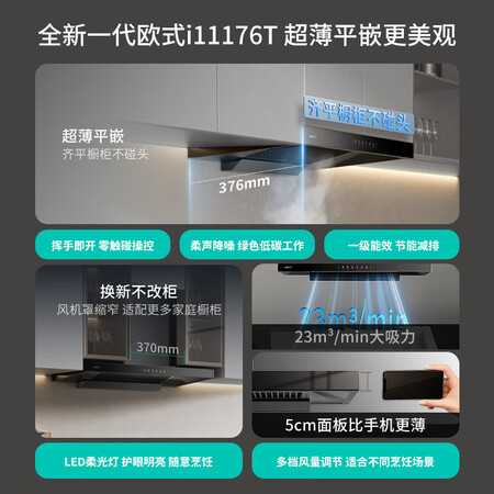 华帝油烟机i11176T和小飞碟Pro+哪个好?区别大不大?这两个华帝油烟机i11176T和小飞碟Pro+对比区别不是算特别的大,都还是比较的好的,比较推荐入手华帝油烟机i11176T,这款华帝油烟机i11176T还满意的,款式看着相当大气,这个华帝(VATTI)国家政府补贴20% 欧式顶吸家用脱排吸油烟机齐平橱柜23风量大吸力静音一级能效可配燃气灶 i11176T非常nice的,我自己也是才买不久的,华帝极窄烟机是我近期购买的一款厨房电器。在使用过程中,我深感其设计精良、性能优越。首先,这款烟机的外观设计非常现代时尚,极窄的机身与厨房整体风格完美融合,不仅节省了空间,还提升了厨房的美观度。其次,烟机的吸力强劲且运行噪音低,即使在烹饪高峰期也能轻松应对油烟问题。
