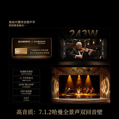 创维A7F Pro采用Mini LED背光技术,对比度更高,暗部细节更丰富,尤其在观看HDR内容时表现突出。色彩调校偏冷色调,适合喜欢锐利画面的用户。