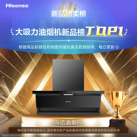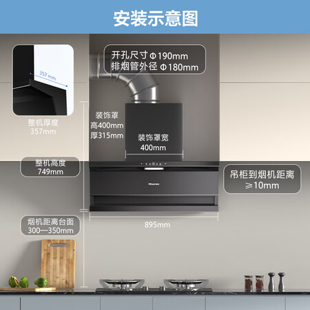安装师傅服务非常好,有问必答,主动给客户介绍机器使用方法。产品质量很好,价格实惠,物流很快,值得推荐!小小的但是吸力不错的,安装师傅也很认真。摆手就开那个功能我觉得很好用。静音效果:还可以接受的,比原来的安静。海信的这款抽油烟机,风力够大,外形也比较节省空间。现在很多品牌的所谓“侧吸”都会伸出来一个巨大的拢烟板,实际上非常占空间。这款就没有这个问题,很清爽。需要注意的是,这款油烟机自身高度是比较高的,购买时要量好开孔的高度