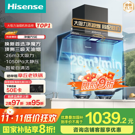 海信DS11HSE、DS11HPro、DS11HMax哪个好?区别大吗?两个海信DS11HSE、DS11HPro、DS11HMax其实很接近,款式和功能上我更倾向于海信DS11HSE,感觉性价比要高一些,主要还是看个人选择,我自己也在用这款,这款海信DS11HSE是非常值得的,外观时尚质感蛮强的,这个海信(Hisense)顶侧双吸超薄平嵌变频26立方大吸力挥手自清洁家用抽排吸油烟机DS11HSE国家补贴20%同配低价的确是不错的哈我自己也是才购买不久的,外形外观:精美,大方 排烟效果:特别有劲 静音效果:声音不大 清洗难度:自动挡更完美 物流速度:快递小哥特别准时,服务不错 噪音程度:可以忽略 以旧换新:回收旧品的夫妻俩师傅特别准时,态度不错,特别表扬安装的徐大团师傅晚上不辞辛苦安装,技术支持到位