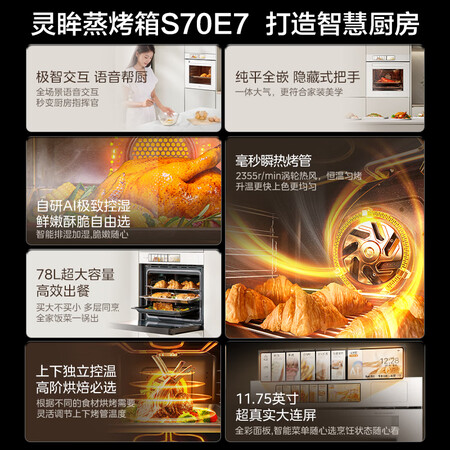 美的蒸烤箱一体机E7和E5哪个好?有什么区别?这两个美的蒸烤箱一体机E7和E5差别不大的哈,通过对比后我订的是美的E7,这款美的(Midea)【AI语音交互】78L大容量灵眸嵌入式蒸烤箱一体机E7 温湿双控纯平全嵌 AI智慧蒸烤炸炖4合1体S70E7确实蛮可以的哟,美的微蒸烤箱,值得信赖。第一天买,第二天就送货了,非常快,价格也很划算。安装师傅负责细心,烤箱看着就很漂亮 和我的定制橱柜尺寸吻合,配套还有蒸架,烤盘,食谱等等东西,好期待后续使用,做出美味餐食。唯一遗憾的就是我的插座要换,所以现在没有插电。赶紧换个16A插座用起来,哈哈哈!