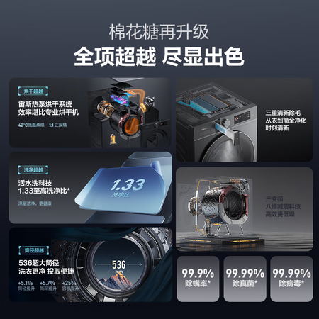 海信(Hisense)璀璨棉花糖热泵洗烘一体机E8Q 全家筒大筒全自动滚筒洗衣机 大容量健康活水洗 WH130E8Q 以旧换新目前活动价:?9?元!