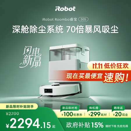 艾罗伯特(iRobot)仿生双旋增压扫拖机器人505 智能洗地扫地机器人扫拖一体自动清洗家用洗拖吸尘集尘擦地机水箱版目前活动价:?9?元!