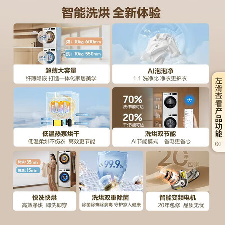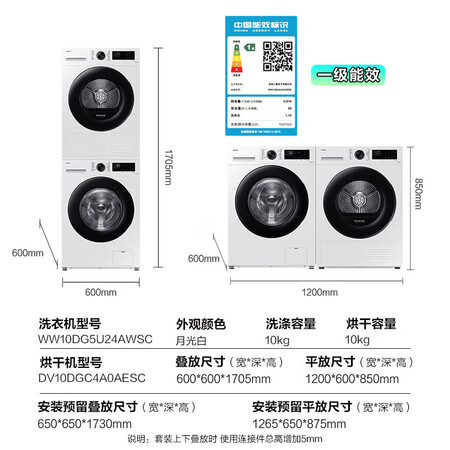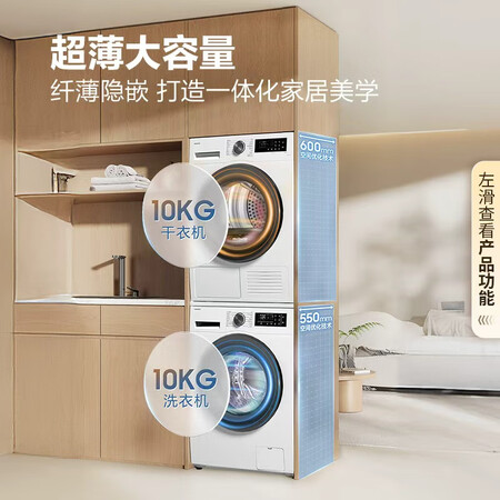 三星(SAMSUNG)AI神洗烘套装5系 10+10KG全自动滚筒AI泡泡净超薄嵌入月光白 WW10DG5U24AWSC+DV10DGC4A0AESC目前活动价:?9?元!