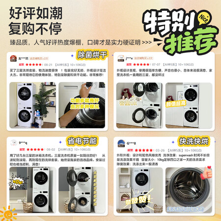 三星AI神洗烘套装5系和TCL T3 PRO哪个好?有区别没有?三星AI神洗烘套装5系这款迷你洗衣机大小适中,外观美观。昨天购买,今天即送达。师傅上门安装迅速,态度友好。机器试机运行正常,带有煮洗功能,除螨都很不错!洗衣机,老品牌,买一台可以用很久了,这台洗衣机操作很方便,公斤的,容量很大,足够一家人用,可以洗衣服和被子,洗出来很干净,效果不错。买了第二台 给小孩用 还是比较实用的 主要是解放双手 就是物流比较慢 实际使用功能就是快洗和标准洗非常好,外观漂亮,小巧省空间,功能齐全,安装师傅也很,以旧换新:外皮生锈还能用的波轮洗衣机,折了?外观颜色非常正,很显档次,而且还可以智能控制,很方便,买回来特意洗了两床被套,一个被单,试了,很干净,不打结,真的没踩雷,整体不错的。
