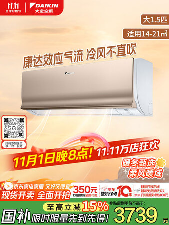 大金空调大1.5匹新二级E7变频冷暖 康达效应气流 舒适风空调挂机国家补贴以旧换新静音省电ATXS236WC-N目前活动价:?9?元!