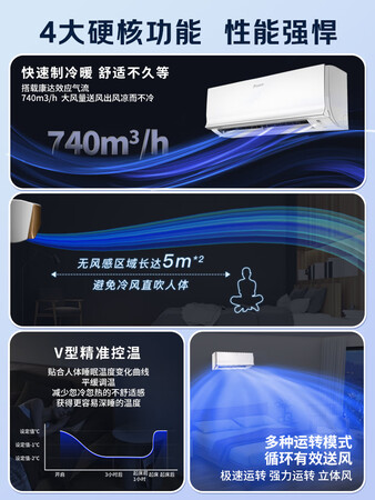 比想象的要大一点,制冷效果很好,包装很完美,颜值很高,感觉物超所值!客服也非常耐心细致,发货快物流给力,以后还会再来?空调,产品质量没的说,新款产品,风比较柔和,吹的比较舒服,晚上很安静,睡眠状态,相当不错,国补以后价格,以旧换新,很便宜。效果很好,外观设计美好,节能省电:静音省电送货安装:送货上门当天就按装好了空调到货后,安装师傅很快就联系了安装,安装师傅态度很好,活干的精细,冷暖效果:制冷效果很快,这个夏天真的太需要啦静音效果:声音很小,几乎没有产品特色:颜色和外观都很漂亮送货时效:送货安装很快