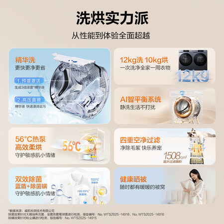 海尔(Haier)云溪55系列 洗烘套装12KG滚筒懒人洗衣机+热泵烘干机家用 12kg55J7+55J7 京东自营 国家补贴目前活动价:?9?元!