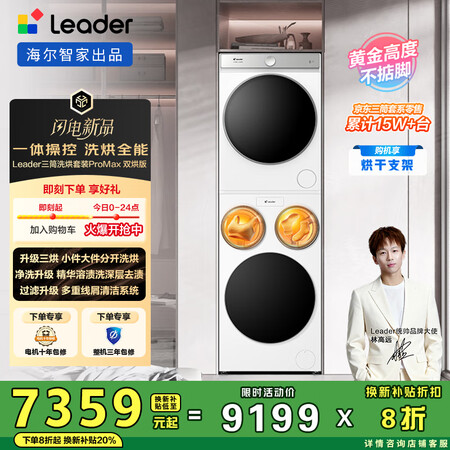 统帅(Leader)海尔智家懒人三筒洗烘套装ProMax双烘 12.5KG一体操控国家补贴XQGL125-MHBLD697U1+GAL100-F697WU1目前活动价:?9?元!