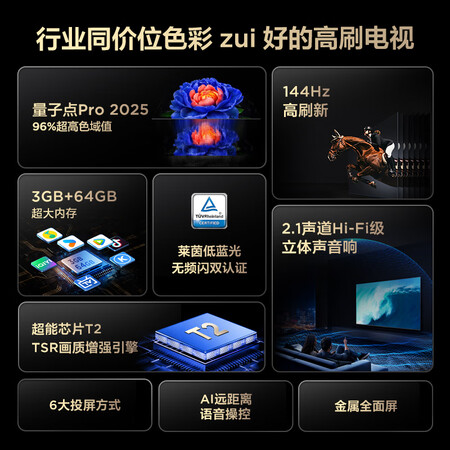 Q10L搭载的是QLED量子点技术,配合杜比视界和HDR10+认证,色彩还原度更高,亮度峰值达到1000尼特,暗场细节处理更细腻。V8L Pro采用普通LED背光,支持HDR10但未通过杜比认证,画面层次感稍弱,适合日常观影但对画质要求不苛刻的用户。