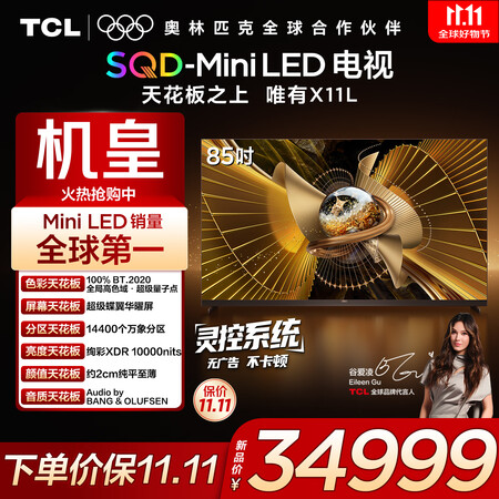TCL 电视 85X11L 85英寸 SQD-Mini LED机皇 100%全局高色域 超级蝶翼华曜屏 万象分区 约2cm至薄目前活动价:?9?元!