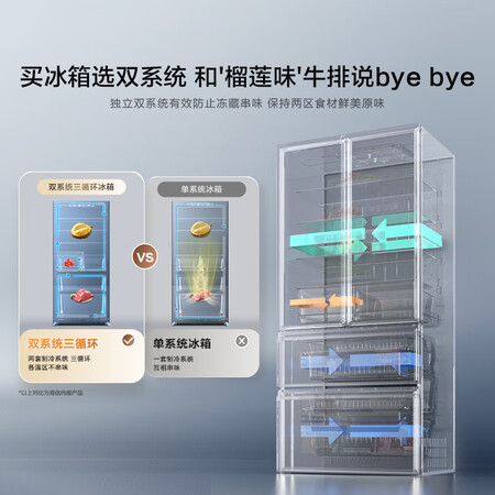 小榴莲500的卖点是“真空保鲜”,通过抽真空降低氧气含量,延缓食材氧化,适合存放海鲜、牛排等易变质的食材,实测保鲜期能延长2-3天。500V5则采用传统风冷+铂金抗菌,优势是湿度控制更均衡,蔬菜水果不易风干。