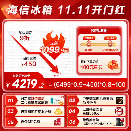 海信小榴莲500冰箱真空保鲜零嵌入式冰箱家用法式四开门超薄双系统一级能效国家补贴20%BCD-500V5FZKQD目前活动价:?9?元!