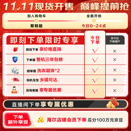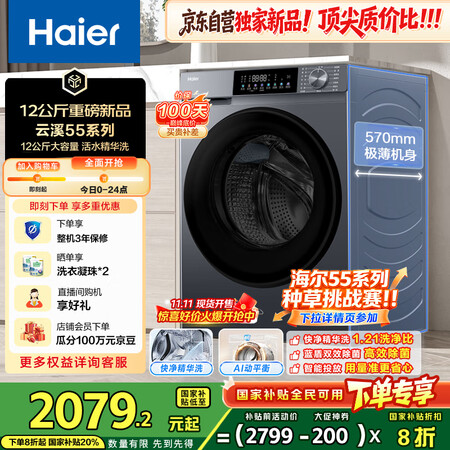 海尔(Haier)滚筒洗衣机全自动12公斤 超薄家用家电国家补贴 京东自营云溪55J7 一级能效以旧换新 内衣洗出租房目前活动价:?9?元!