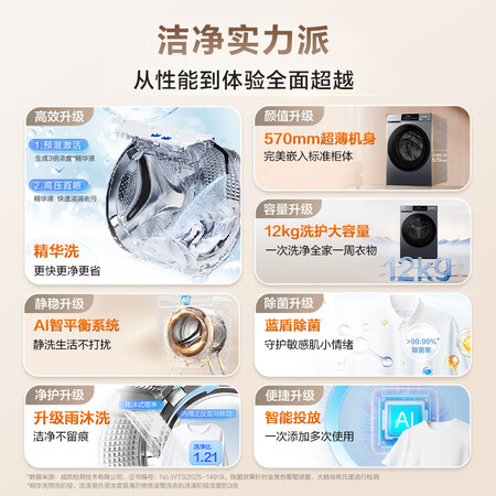 白色的洗衣机颜色非常的好看,看起来很有档次,家里人都非常喜欢。洗衣机洗衣服洗的快又干净。烘衣机也很好用,运行起来没什么声音,非常满意。这个价格买到这么好的洗衣机真心满意,而且噪音小,容量完全可以洗一家子的衣服,洗的还非常干净,脱水功能也没有抖动,操作简易,非常推荐!小巧玲珑,不占地方,使用了几次才来评价,用来洗袜子实在太方便了,甩干功能也很好用,冬天终于不用冻手了外形外观:机器很薄,正好嵌在柜子里。平面的很好看。非常喜欢,还好等了一年,不然就买不到这么好看的了。收到货了,给父母买的,跟放在这刚刚好,大小合适,试用了一下,声音不大,清洗力强,清洗容量大,能满足一家四口需求,很好的一次购物体验?