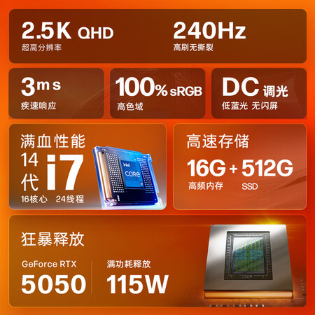 高分辨率(2K以上),护眼认证,高亮度(全屏>400nits),高刷新率(120Hz以上),高屏占比(≥85%),高色域(100%sRGB)